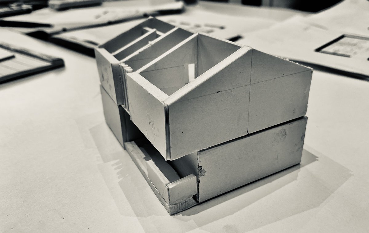 La maquette physique, en carton ou en bois, constitue un outil fondamental de conception.Elle permet de manipuler le projet, de comprendre les espaces, les volumes et leur insertion dans le contexte, d’appréhender les rapports d’échelle et la matérialité, et d’établir un lien direct et tangible avec l’architecture.